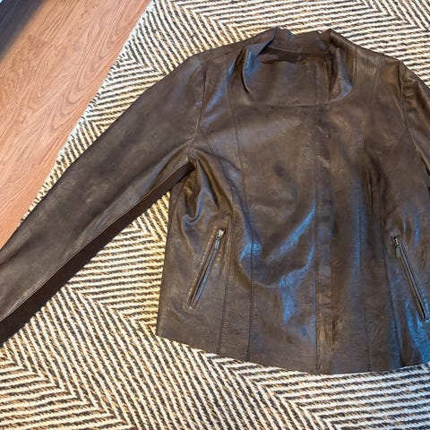 Ubrukt skinnjakke med innsving og 4 spenner i siden.