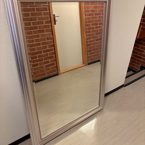 Til salgs et speil med buet topp. Skjulte fester og skruer følger med.