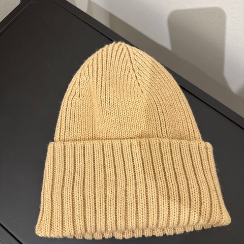Selger en ny lue fra Bits & Bobs. Lappen henger fremdeles på og luen er i fargen «camel». Den selges ettersom den aldri har blitt brukt.