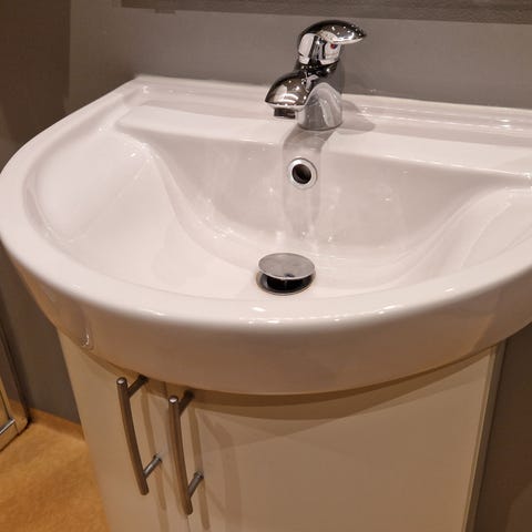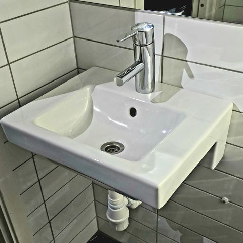 Vasken er i en høykvalitets kunststoff i høyglass utførelse med helstøpt vask. Dette materialet er ekstremt resistent mot riper og bruk, og egner seg godt til bad.