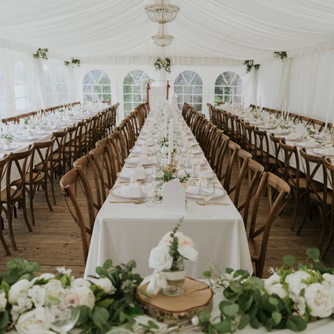 Nyhet: Pakkepris på leie av stoltrekk, sløyfebånd, stoffservietter og duker, kr 80 pr person! Alt er nystrøket og vask er inkludert!