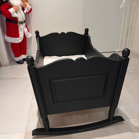 Hvitmalt vugge i heltre