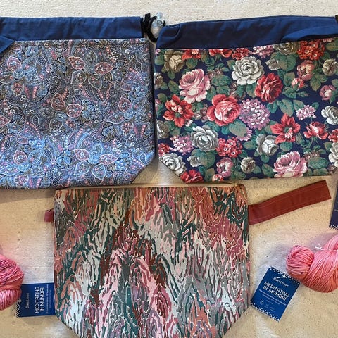 2 håndlagede quiltede tote-bag og en liten pung (japansk inspirert)