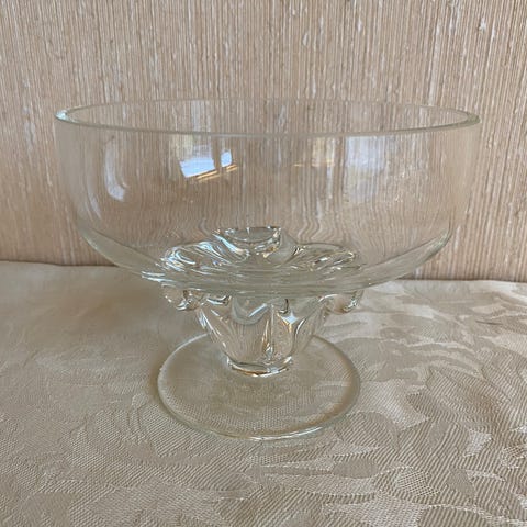 Flott og helt uten slittasje. Noen luftbobler i godset fra produksjon.Tykt glass og veier 1,8 kg.