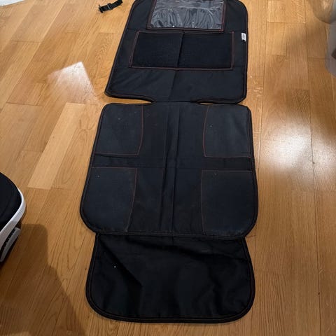 Pent brukt sete beskyttelse med 2 lommer. Farge: svart.