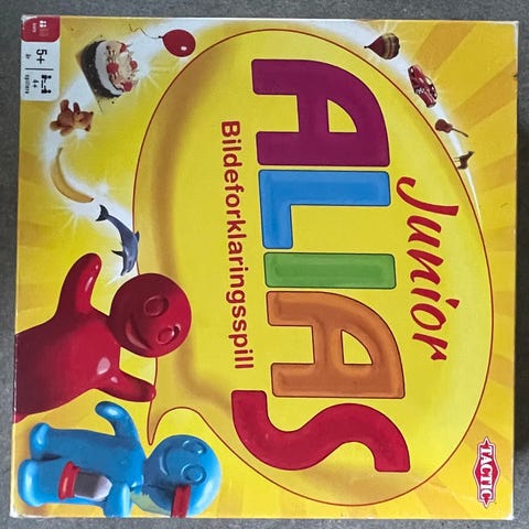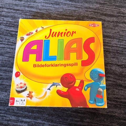 Junior Alias er et kjempegøy bildeforklaringsspill som passer perfekt for barn og voksne sammen. Man spiller på tomannslag og man må være minst 4 deltakere. Man skal forklare til sin lagkamerat hva bildekortet man trekker forestiller med ord, slik at han/hun kan gjette riktig så mange ganger som mulig før sanden i timeglasser har rent ut.