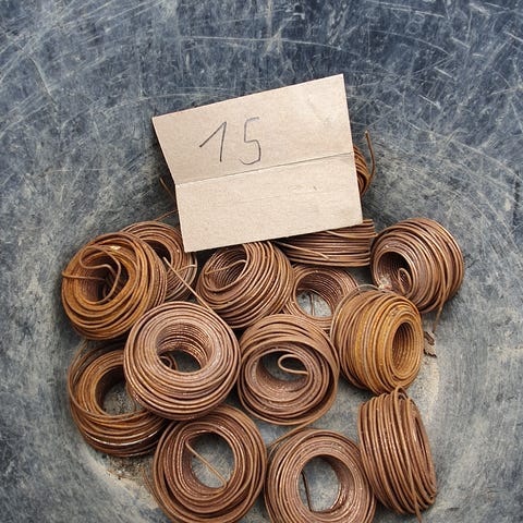 Selger jernbindertråd på rull av 1 kg per rull, type 1,5mm. Vet ikke om de er til noen typer maskiner eller beregnet kun for hånd montering. Har 50 ruller. 30,- per rull. Eller 250,- for 10 stk.
