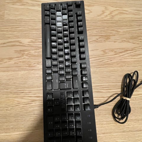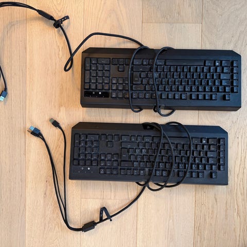 Selger et Razer BlackWidow mekanisk tastatur. Solid og responsivt – perfekt for både gaming og skriving. Kablet USB, fungerer som det skal.
