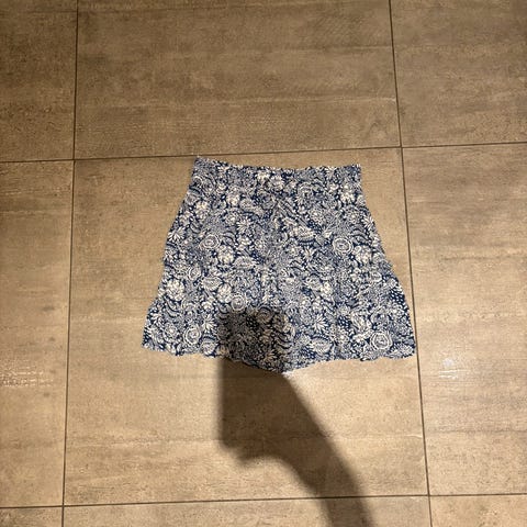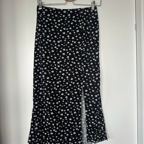 Sommerslig sarongskjørt selges! Fint snitt både i livet og på siden. 46 cm i lengden og ca. 110 cm i bredden som jo skal snurres rundt livet. Str. XS-S.
