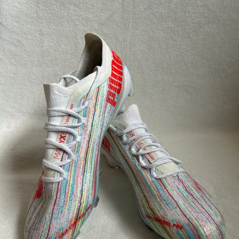 Puma V1.11 FG fotballsko. Dette er en utgått modell fra 2011 og er ikke lenger i produksjon. Denne skoen er den siste av V1 serien som ble lagd før puma byttet over til Evospeed serien. Skoene er veldig kjent for carbon materialet i forfoten, den store lacecoveret og den anatomiske passformen. Skoene har en veldig rar passform, om hvor skoen kurver seg fra lille tåa til stortåa. Så vær obs på at skoene kanskje ikke passer ordentlig til din fot type. Størrelsen på skoene er også litt annerledes fra andre sko og må beregne cirka et halvt nummer opp fra din vanlige størrelse.