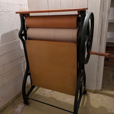 Fungerende klesrulle fra Christiania Glasmagasin. Kan hentes i Trøgstad.