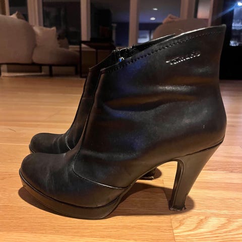 Tamaris ankelstøvletter i skinn, med kule detaljer.. Veldig gode å gå i, gode såler under, med litt spor i. Str 36