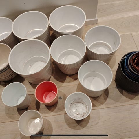 Flotte og fine Potter i forskjellige farger og størrelser .