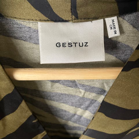 Ny bluse fra Gestuz. Modell: view-lsh. ( modell med blusen er fra Amazon uk) Str 36. Farge : olivengrønn. Kvalitet : 100% polyester. Ny pris: 799kr, selges 200kr
