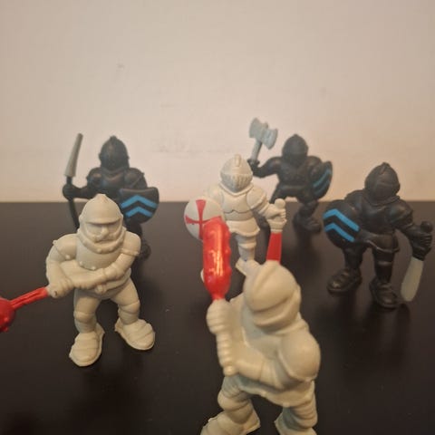 Disse ridderne er ca.7 cm høye. Selges samlet kr.70.-+kr.70.-frakt. Alle er forskjellige. Jeg har vipps.