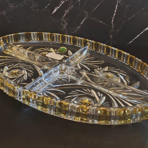 Bestående av 4 firkantige glass skåler i en sølvramme