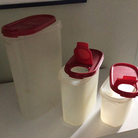 Fine retro oppbevaringsbokser i hardplast til kjøkkenet