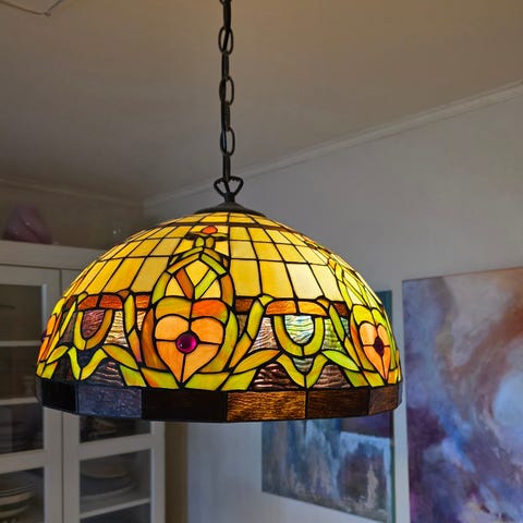 Vakker lampe i Tiffany-stil med håndskåret glass