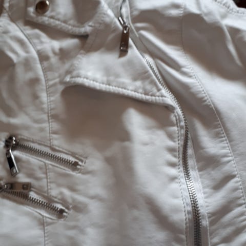 Kjole - hvit med lommer, knapper og glidelås helt ned. Str. L. Kan sendes.
