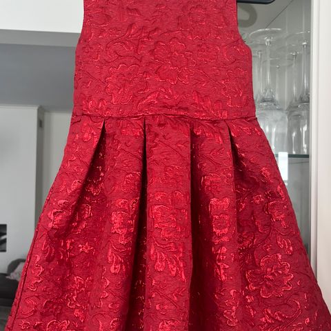 Marineblå kjole med 2 lag tyll og litt glitter, fòret med silke, str 6-7 år, sommerfugl-armer/rysjer, kneppe bak ved halsringningen, meget pen, selges for kr 70,-.