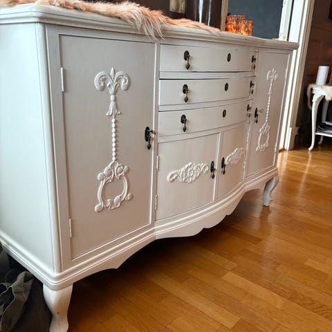 H: 75 cm, L: 108 cm, B: 35 cm. Bordet er solgt men noe liknende kan lages på bestilling med dine ønsker for utforming, størrelse og overflatebehandling. Pris: 4500+ mva.
