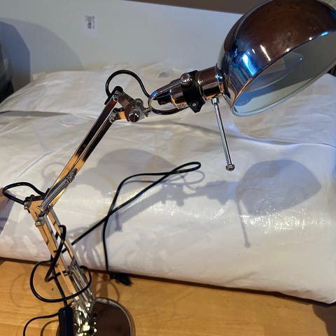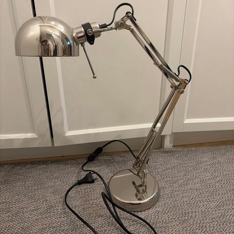 Kjøpte denne skrivebordslampen på Bohus for en to års tid siden, men har knapt blitt brukt, og ser derfor etter ny eier. Veldig flott og gjør seg godt til hjemmekontoret, evt. som nattbordslampe eller bordlampe. Flere justeringsmuligheter. Ingen skader og fremstår som ny. Kostet over 1000 kroner ny.