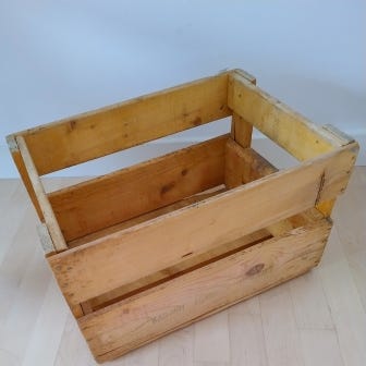 Eplekasser selges. Kassene er hele og i god stand. Størrelse - høyde 28 cm, bredde 34 cm, lengde 55 cm.