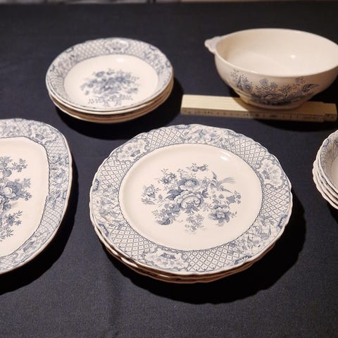 Komplett middagsservise fra Egersund Fayancefabrik. 1901 design/ 1901-1934 Prod.