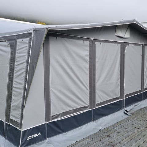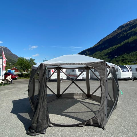 Når du tar vekk front og sidevegger på teltet, har du taket og kan bruke det som et solseil.