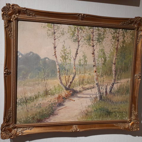 Oljemaleri, Axel Thuesen. Landskap med fasaner.