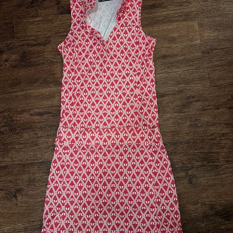 Elastisk i midjen. Glidelåser på begge sider i livet. Striper i sidene, splitt bak med glidelås. Ubrukt