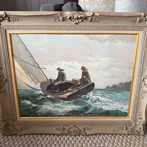 Selges for 3500kr. Maleriet er verdi vurdert av Elverum kunstgalleri på 5000-7000kr.