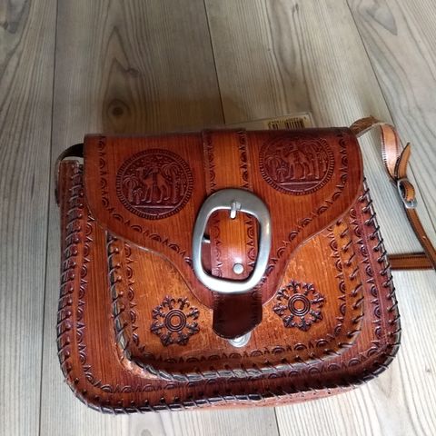 Veldig unik dame veske i ekte skinn selges. Vesken har en ekstra lomme under løkke.Vesken har ingen skader eller flekker.