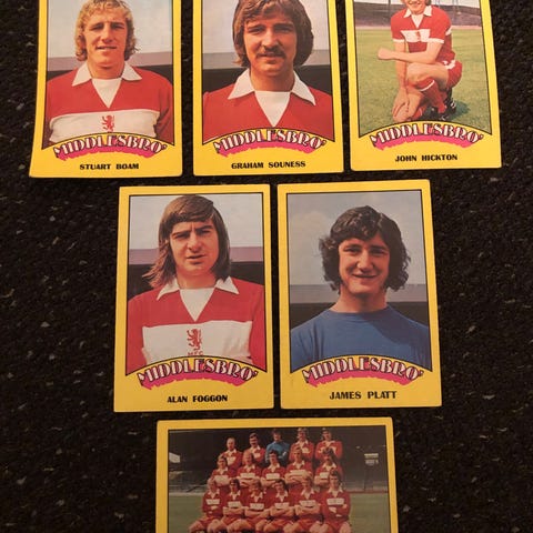 Middlesbrough - komplett sett 5 stk Topps 1981 fotballkort