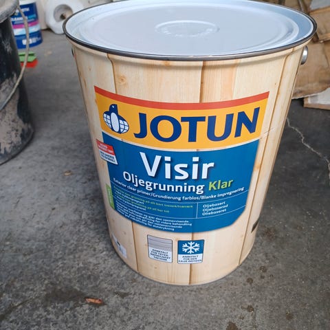 Har ei bøtte på 10 liter. Men det er tatt litt av den så det er igjen cirka 8 liter.