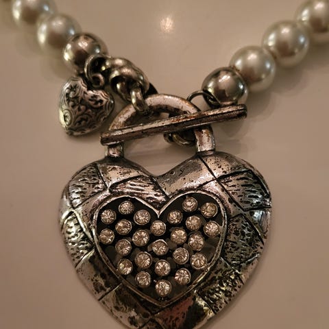 Vakkert nytt smykke med perler og stener i sølvfarge selges