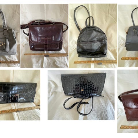 5stk Retro vesker og bager, mål og pris står under bildene.