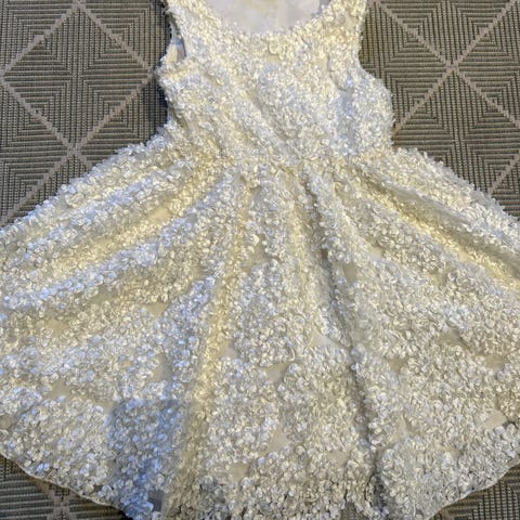 Brudepikekjole brukt pent en gang. Den er sydd av en talentfull bestemor. Det er ingen skader på kjolen.