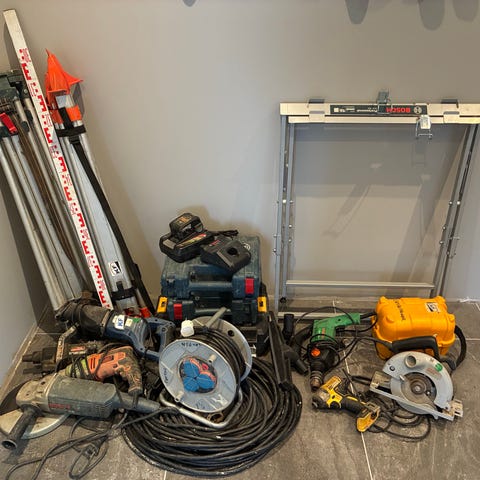Leier ut verktøy av god kvalitet. Tilnærmet støvfri og svært effektiv pussing av gips med giraff og støvsuger