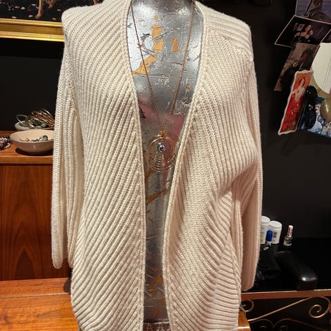 Soyaconcept cardigan selges billig. Str. L-XL. 41% viskose, 35% akryl, 10% angora, 10% cotton, 4% wool. Gi bud.
