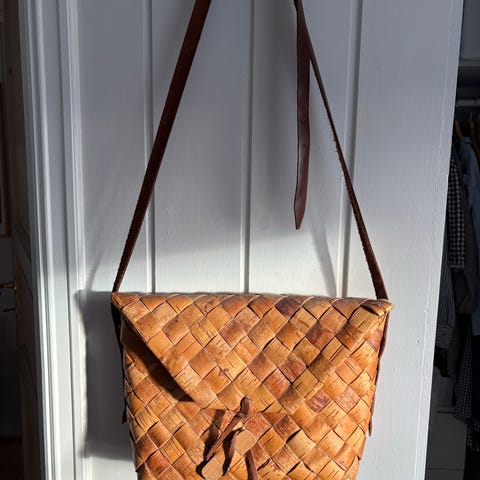 Håndlaget flettet stråveske kjøpt i utlandet. Denne er perfekt til sommeren!