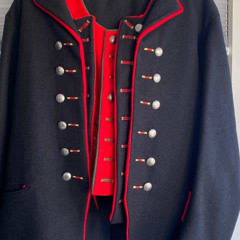 Herre Sunnmørsbunad med skjorte i lin eller strykefri stoff, Hjørundfjordseler, hosebånd, silkeskjerf, hatt, strømper, sølvknapper, hals og mansjettknapper. Bunaden blir montert etter avtale. Norsk materialer