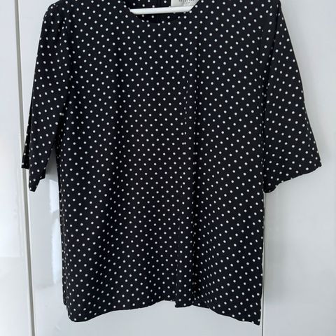 Pent og lite brukt , sort med hvite striper. Klassisk bluse/ topp