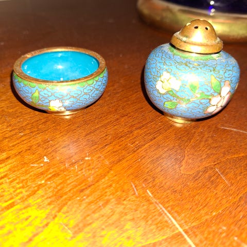 VINTAGE SALT OG PEPPER BØRSER I MESSING MED FAT