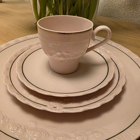 Gammel service i 30 deler, merkingen på disse ble brukt av Hohenberg fra 1901-1933