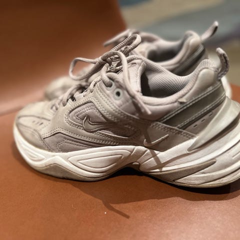 Fine Sneakers NIKE i grå og lysegul. Str. 38. Litt ødelagt av valpen.