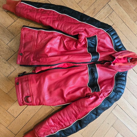 Godt brukt spidi skinndress (bukse og jakke som festes sammen med glidelås) selges, da den har blitt for liten til meg. Det er str. 52. Tipper den passer best for noen som er ca 170 cm høy.
