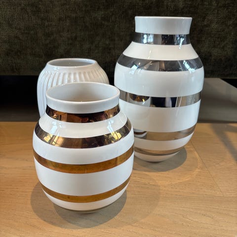 Den største og den mellomste sølv Kahler vaser tilsalgs. Høyde mellomste 20 cm, pris 350kr og stor 30,5 cm, pris 400kr.