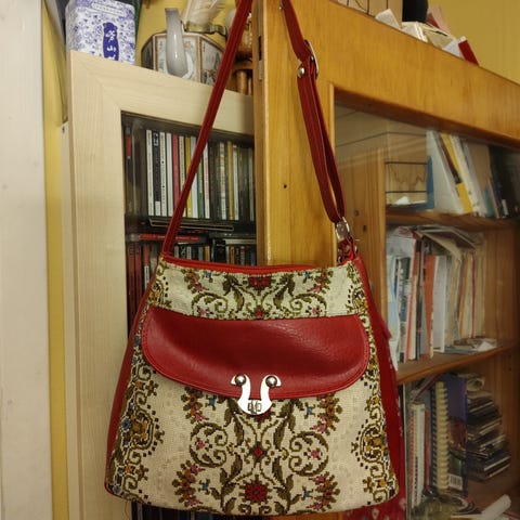 1. Stor flott veske i lin, nesten ikke brukt, fra Riga. SOLGT