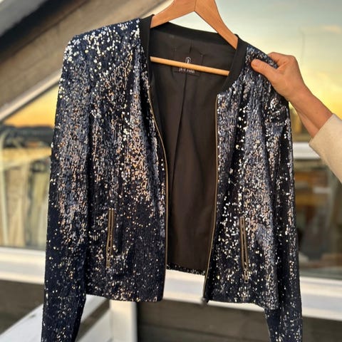 Sort - sølv paljett topp fra Julie Brandt kort erme str S kun brukt en gang selges kr 500. Kan endre farge til mer sort med å stryke paljettene nedover.